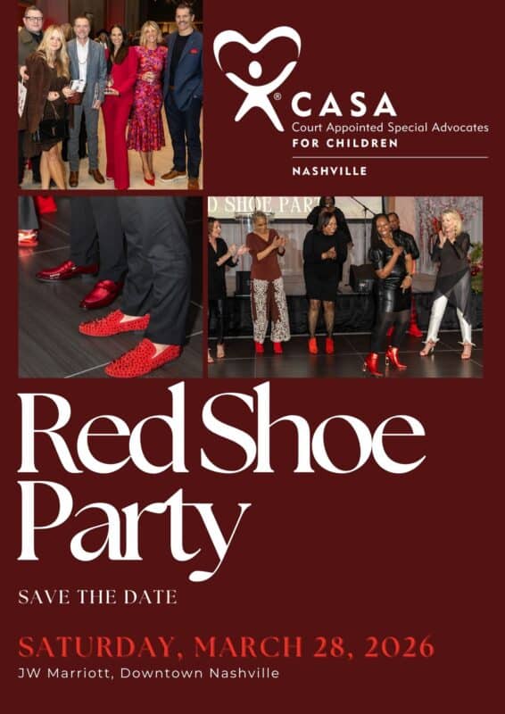 This beloved downtown gala brings together Nashville’s community leaders, advocates, and changemakers for a night of dinner, dancing, auctions, and of course—fabulous red shoes. More than just an elegant evening, the Red Shoe Party fuels CASA Nashville’s mission to provide every child in foster care with a dedicated advocate who ensures their voice is heard and their best interests are championed.
